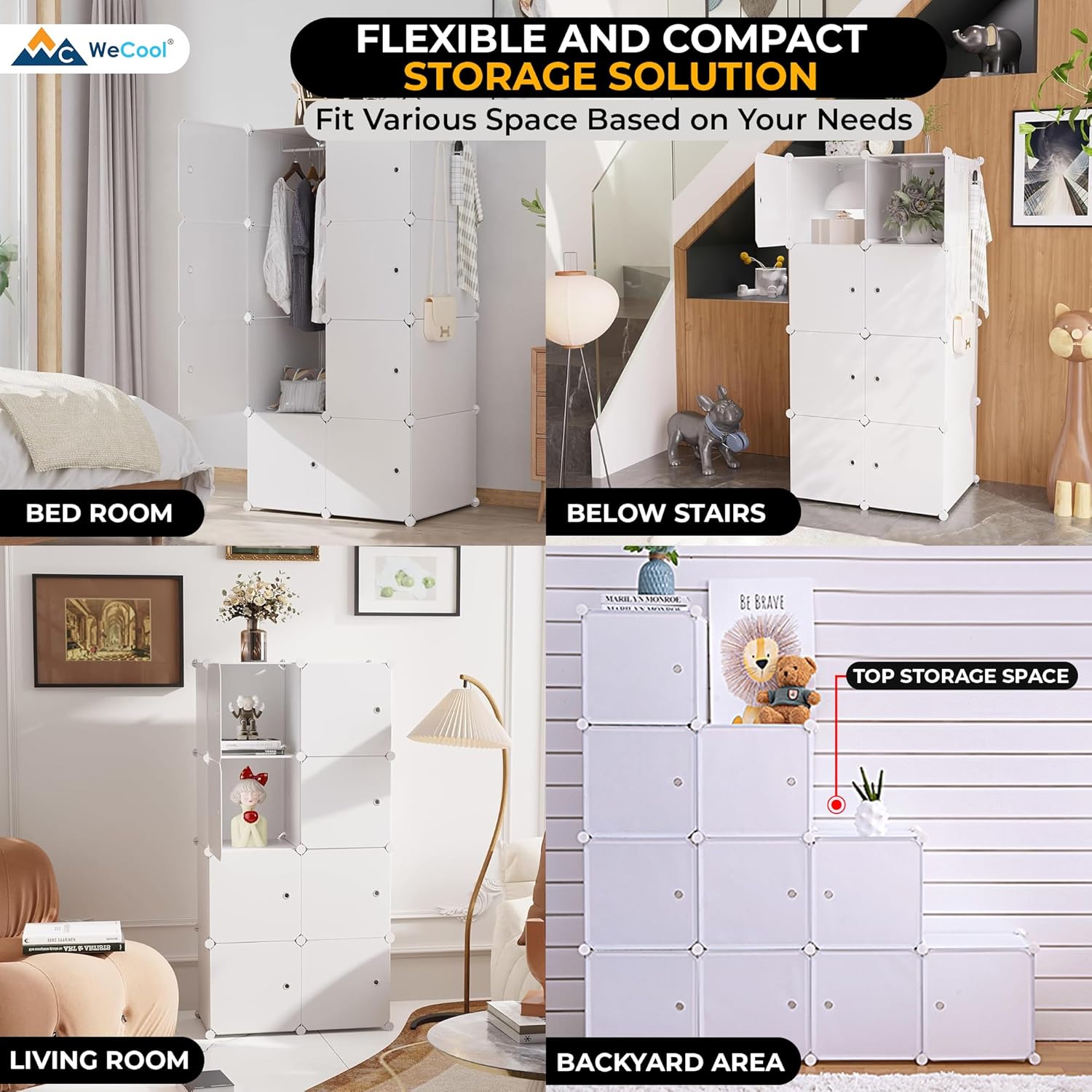 CoolLeaf Soft Plastic Wardrobe for Clothes - 8 Doors Collapsible Almirah for Kids Toys/Books, Baby Cupboard Storage in Bedroom Nursery, White (CW-W8)