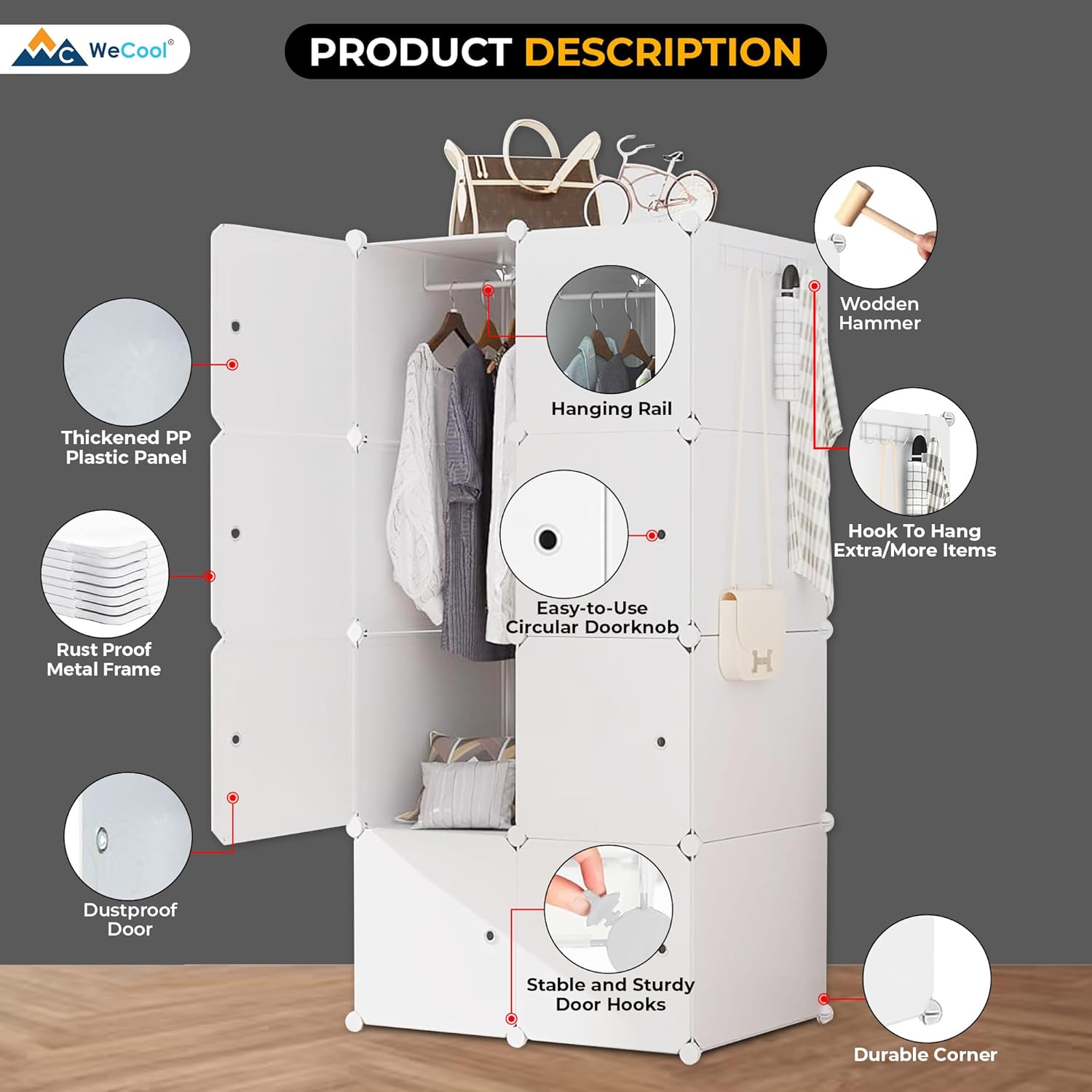 - ๐งฐใ๐๐๐๐ ๐๐ ๐๐๐๐๐๐๐๐ใThe panels and multi-angle connectors of the plastic almirah can be easily interconnected, ensuring a hassle-free and time-saving assembly experience. Plus, a free handy hammer to aid you in the quick installation process. โจPlease refer to the detailed user manual of the portable wardrobe before installation