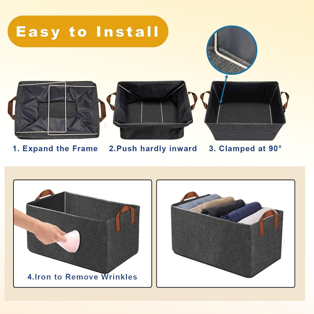 - ๐ใ๐๐๐๐ ๐๐๐ใBefore use to get the wrinkles out the fabric storage bin: either fill it with blankets or pillows for a few days to shape, or steam iron them at low heat. Dusting the basket with a soft dry cloth is recommended. Spot clean with light soapy water when needed. Not recommended to machine wash for there are metal frame.