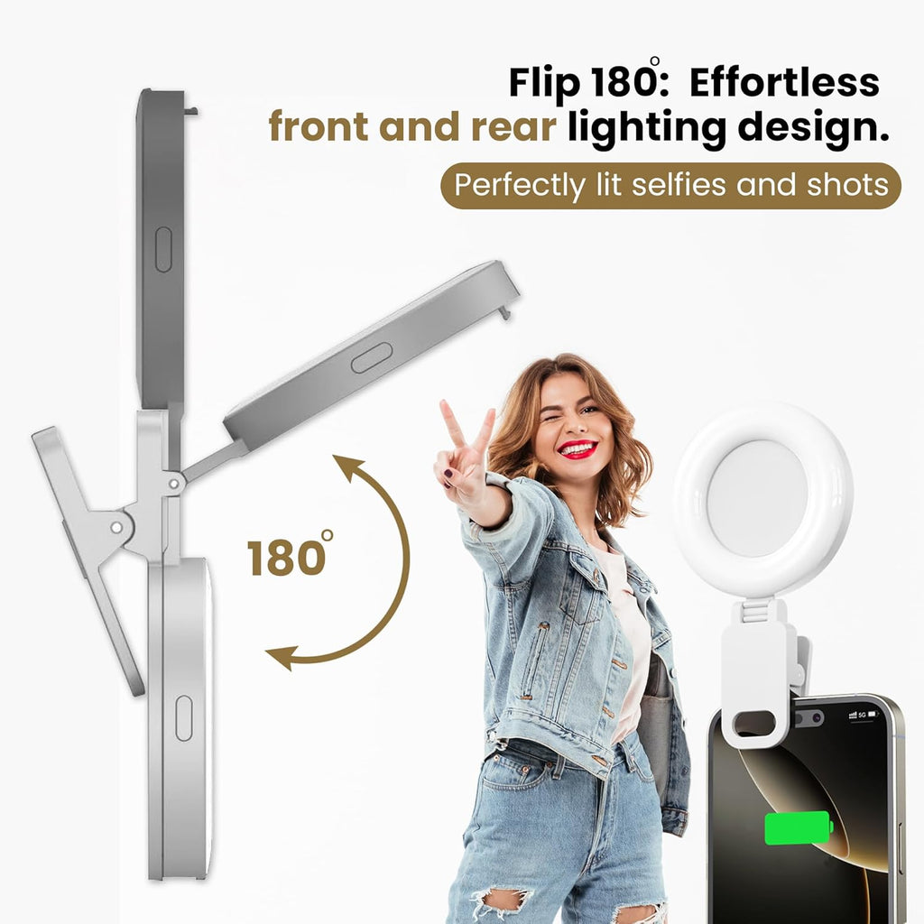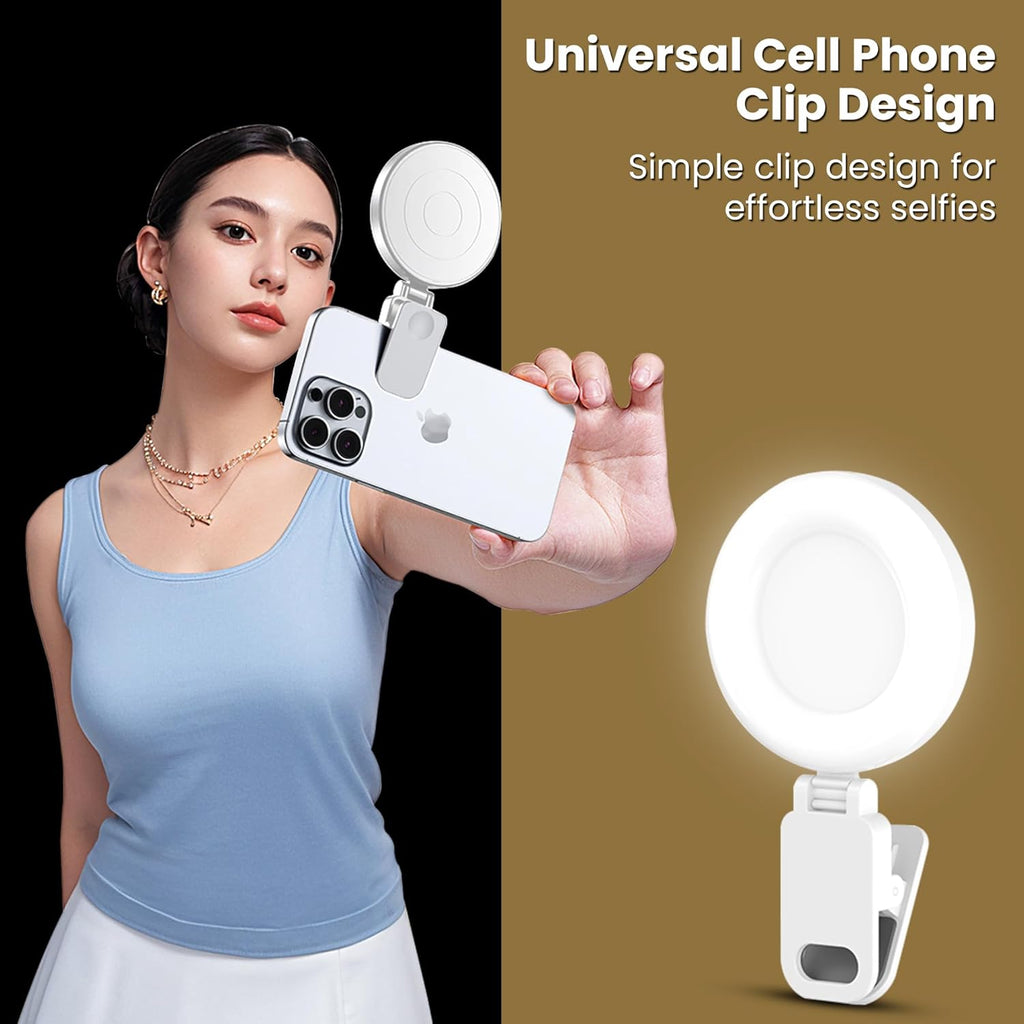 - Clip-On Design for Versatile Mounting: Easily clip the light onto your laptop, mobile, tablet, or tripod. The strong grip clip ensures a firm hold without scratching surfaces. Perfect for use on-the-go, at home, or in the office.