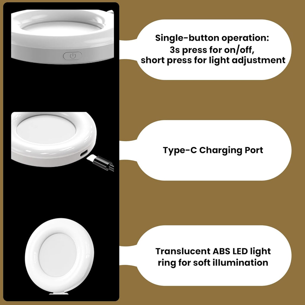 - Rechargeable & USB Powered: Comes with a built-in rechargeable battery and supports USB charging. Plug it into your power bank, laptop, or USB adapter to keep your lighting setup always ready—no need to worry about battery replacements.