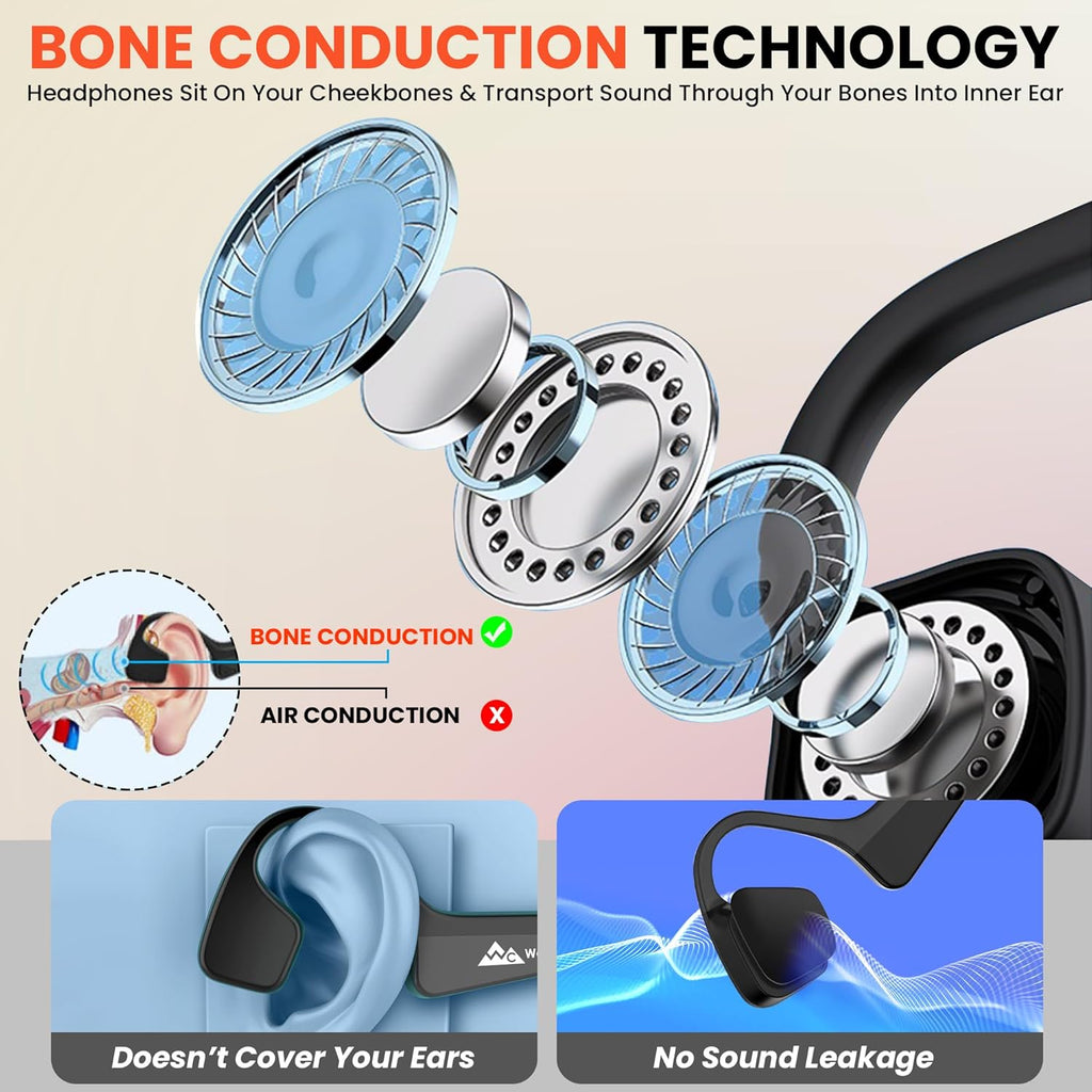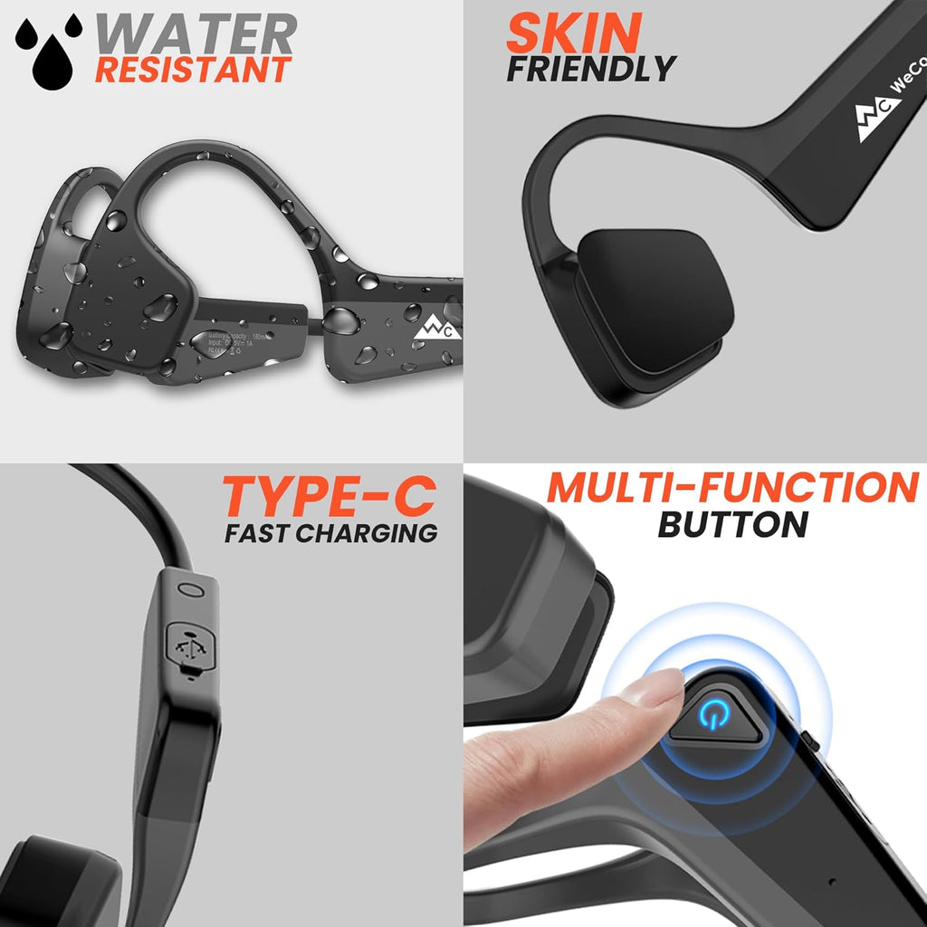 WeCool M4 Bone Conduction Open Ear Headphones Designed for Running,Cycling,Hiking&Other Sports,Gym Headphones with High Bass,Sweat Resistant,Ear Friendly,2023 New Concept for Ear Health and Comfort