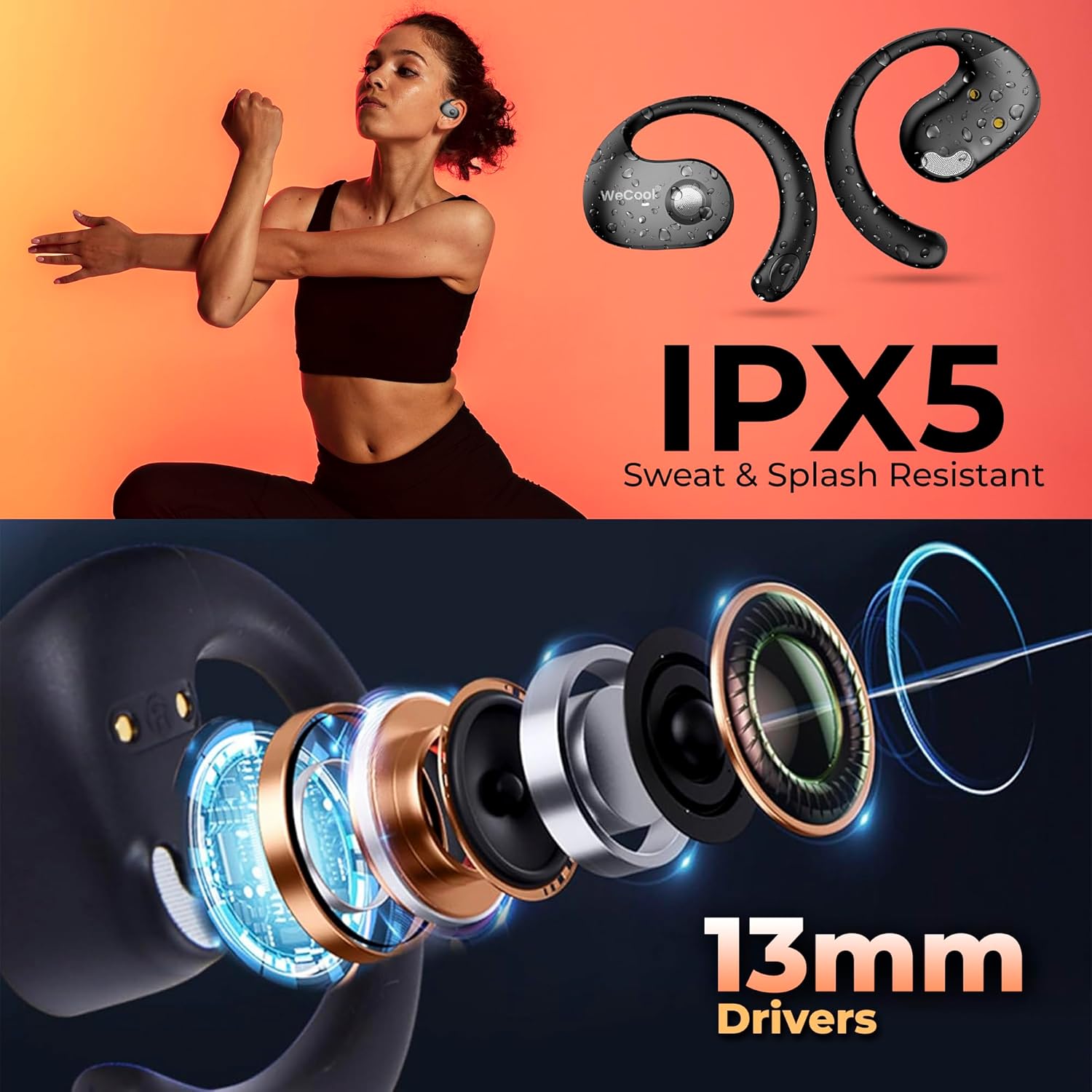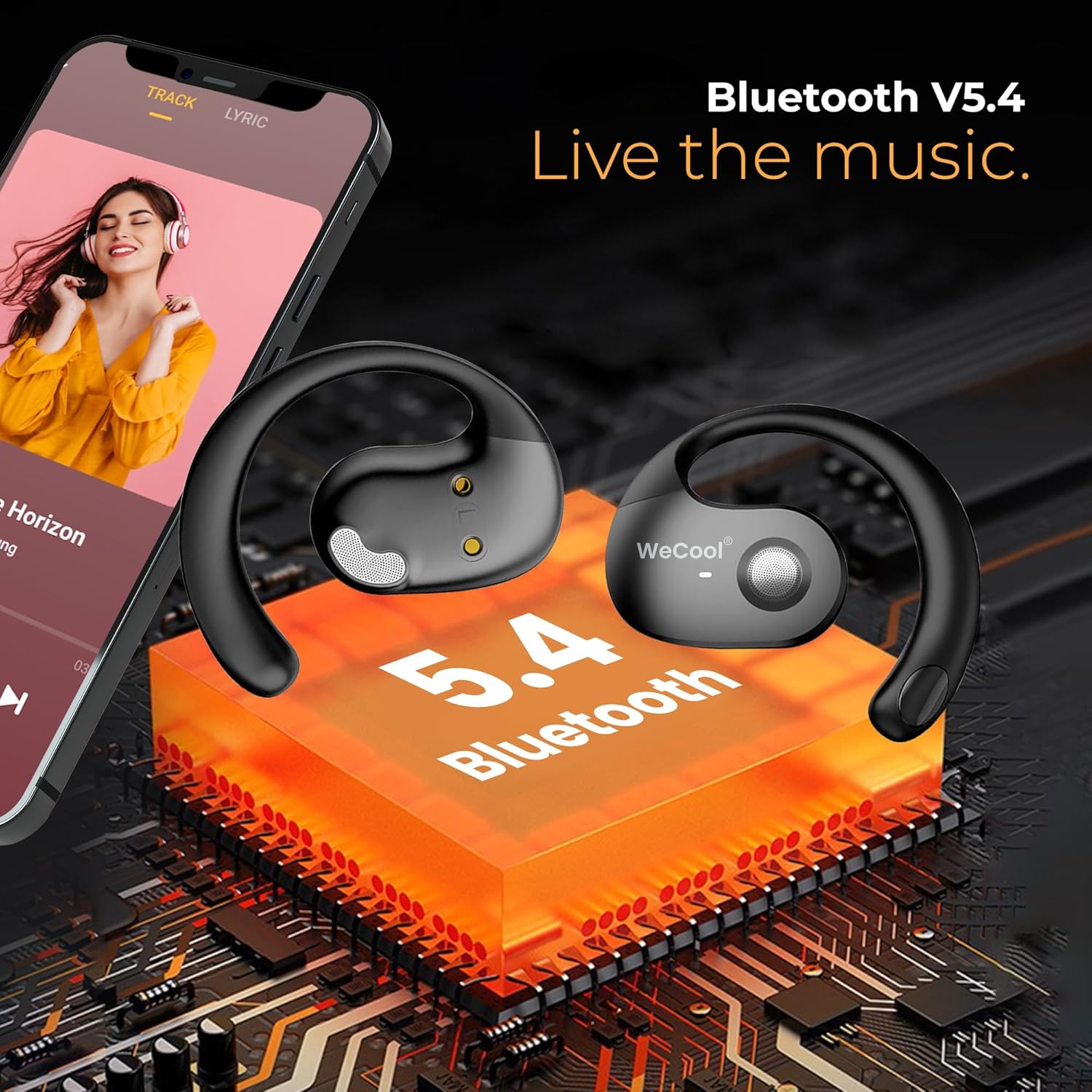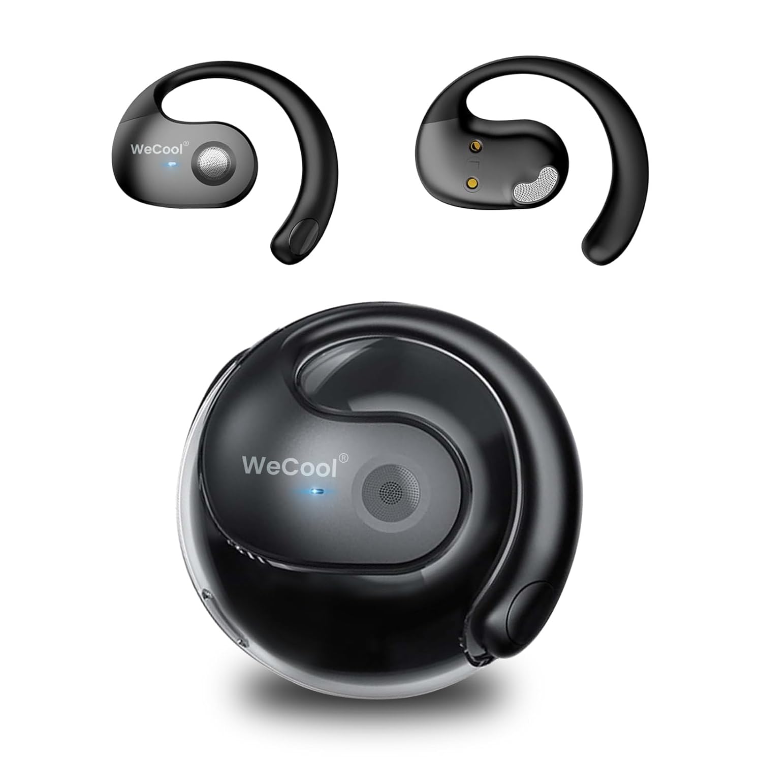 WeCool Moonwalk Mini Ows Bluetooth Open Ear Earphones Wireless with Call Noise Reduction,Ideal for Running,Cycling,and Gym,Long Playtime,Dustproof and Waterproof,C-Type Earphones for Android/iOS-Black-Refurbished