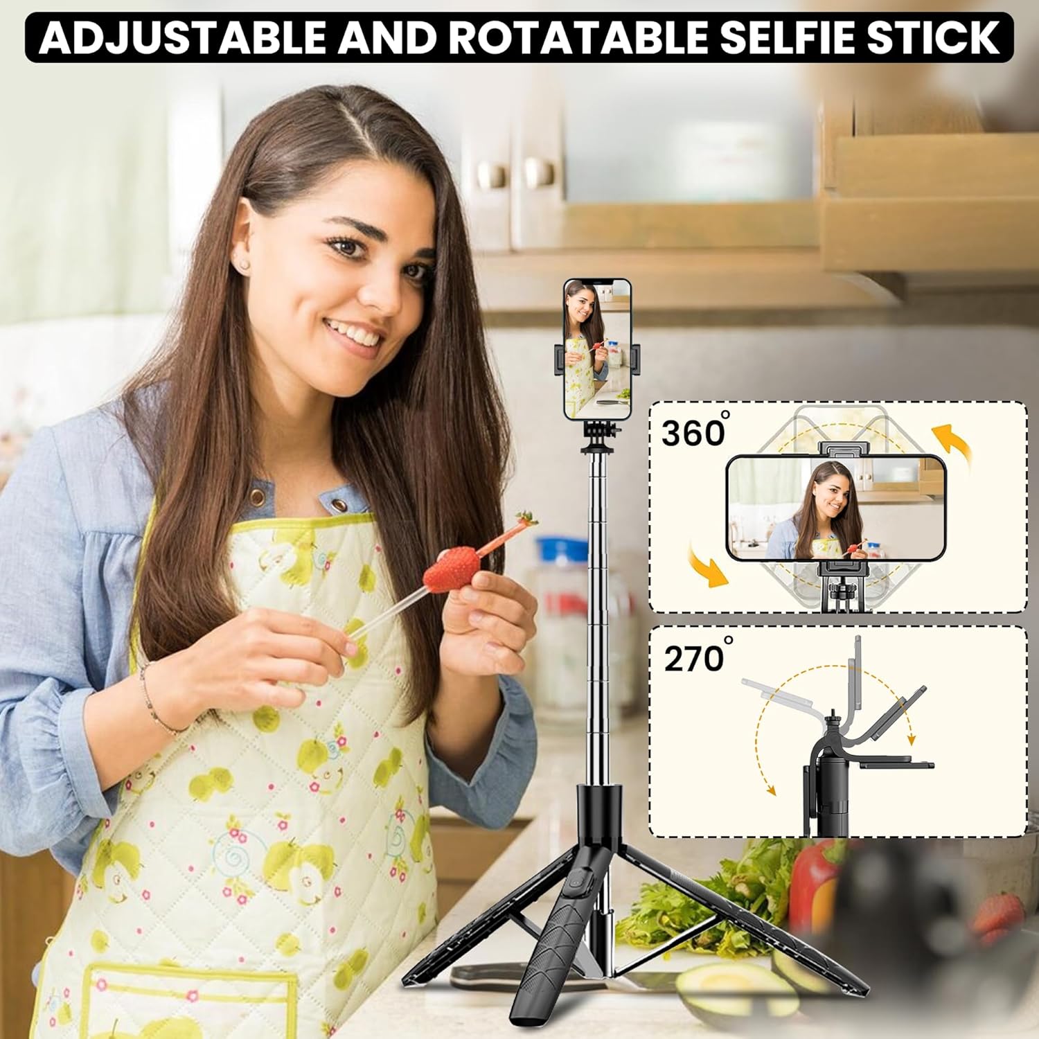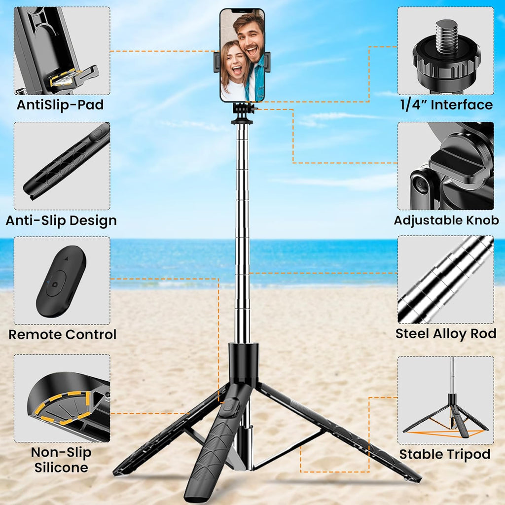 - 360 Degree Rotating Balance Handle,the perfect solution for shaky footage. This balance handle ensure a comfortable & secure hold, allows you to capture professional videos & photos with ease. Selfie stick tripod for Anti Shaking Shooting