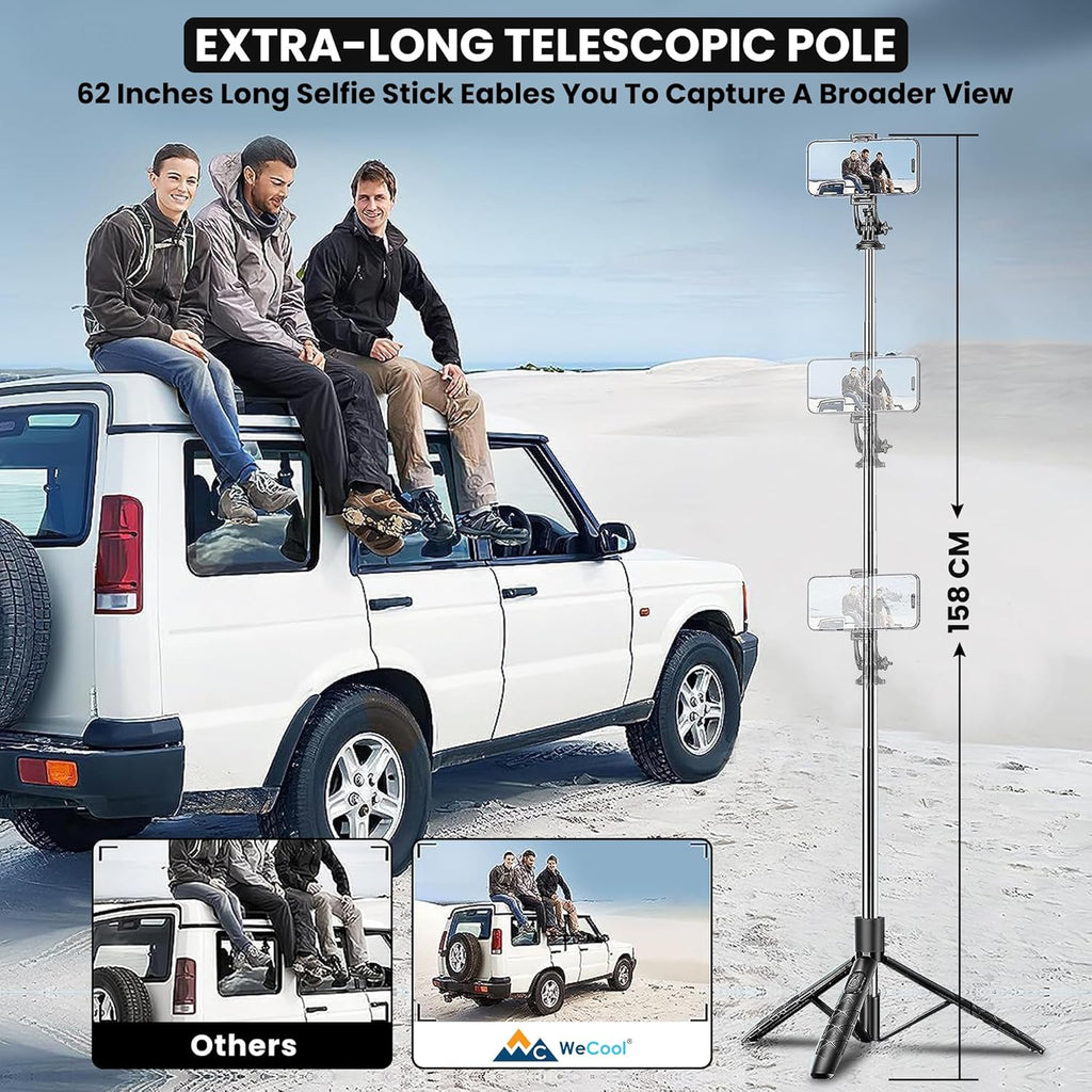 Wecool S5s Selfie Stick with Tripod Stand 360 Degree, Extendable Upto 71inc/ 180cm Long Selfie Stick with 7 Section Stable Base for Mobile/GoPro/Camera, Perfect for Vlogging & Photoshoot