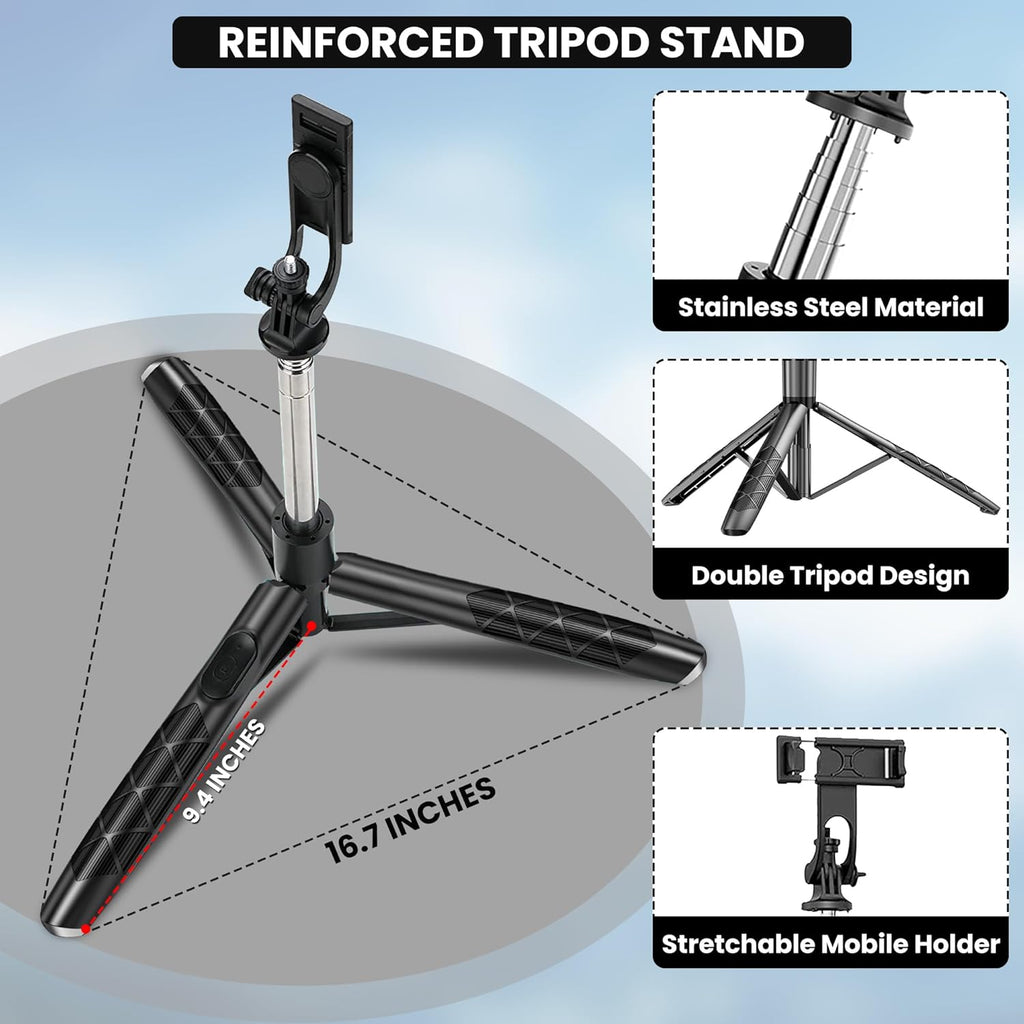 - Upgrade your photography and videography experience with our Large super stable tripod base. Tripod stand for mobile phone with reinforced bracket ensure maximum stability on any surface. Non-slip silicone pads at the bottom for slip-resistance